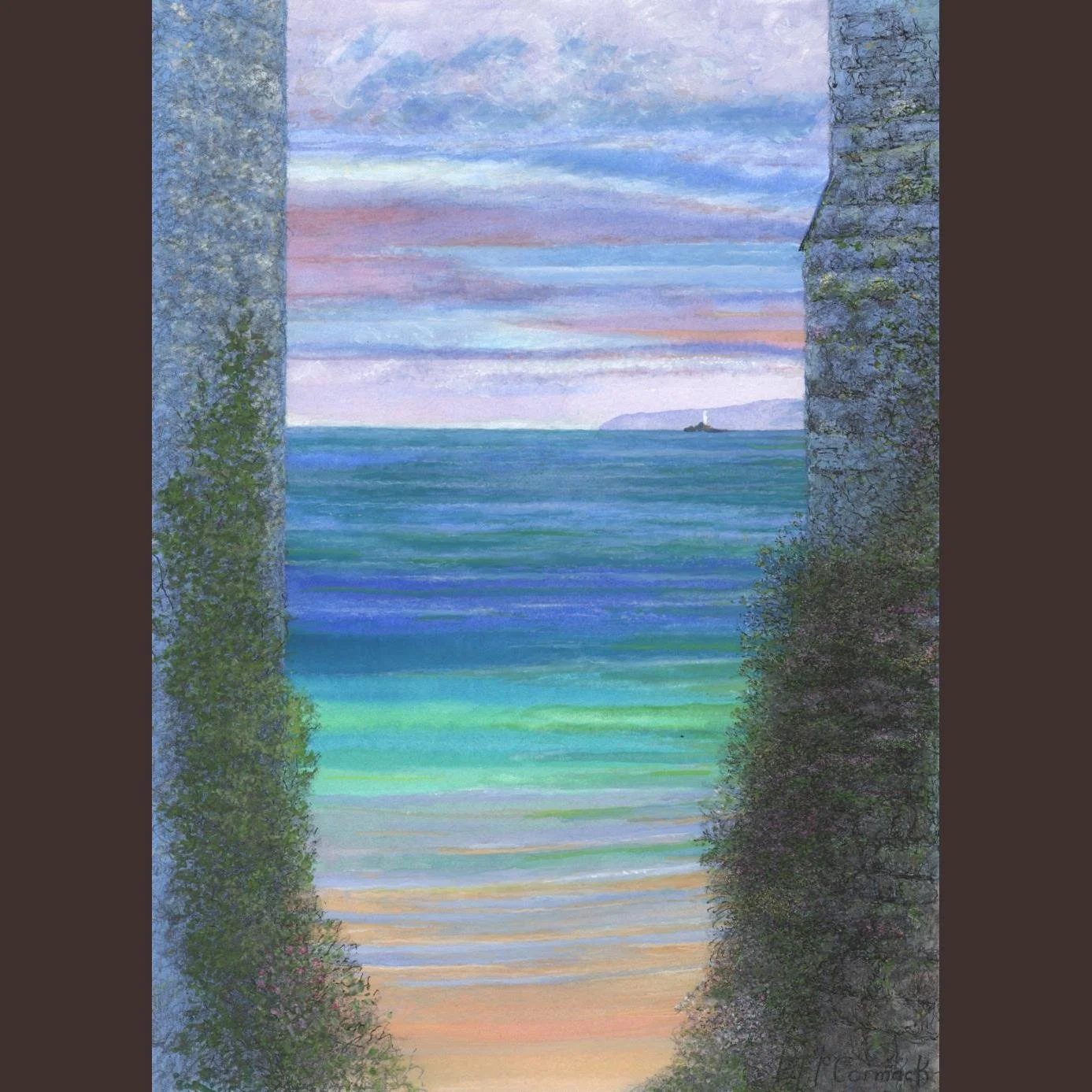 a view of Godrevy from St Ives | Digital Download | no AI involved, the original painting has been sold.